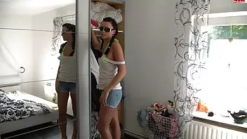 Горячая девушка в зеленых трусиках мастурбирует перед пьяные спящие девушки вебкамерой, не вынимая дилдо из своей попки